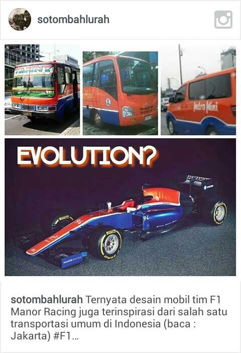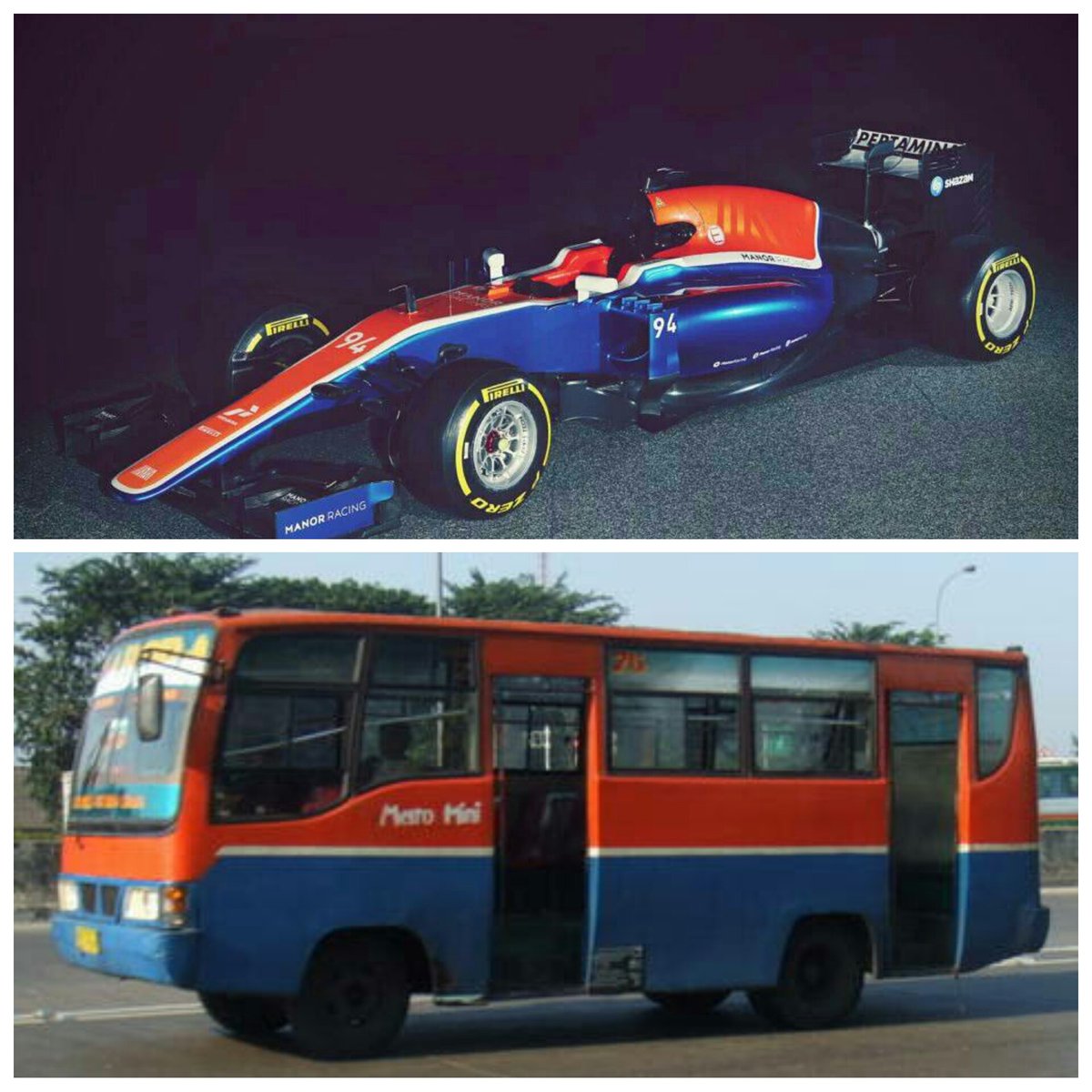 Entah ini sebuah kebetulan semata atau memang kedatangan manajemen Manor Racing beberapa waktu lalu ke Indonesia terkesima dan terinpirasi dengan Metromini ini…hehehe.