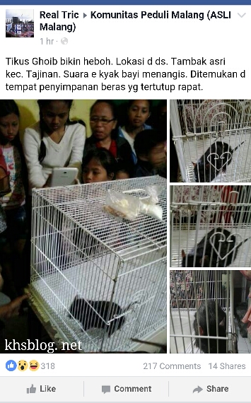 “Tikus Ghoib bikin heboh, lokasi ds Tambak Asri, Tajinan. Suarane kayak bayi nangis. Ditemukan ditempat penyimpanan beras yang tertutup rapat” ujar Real Tric. Makanannya, tambah Tric hanya cuma roti dan minume susu. Mau dikasih makanan jenis lain tidak mau makan. Tak pelak postingan ini menimbulkan kehebohan dikalangan netizen baik yang percaya maupun mengingkarinya.