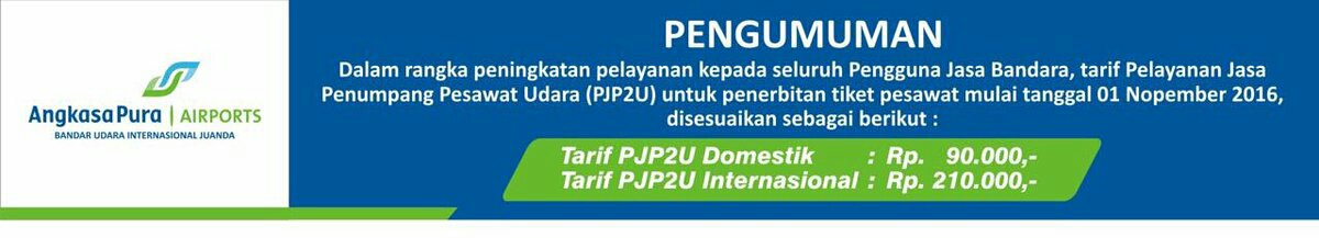 Per 1 November 2016, Airport Tax di Terminal Bandara Juanda Surabaya naik masbrow dan mbaksis