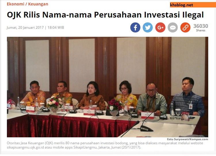Berita tertanggal 20 Januari 2017, OJK merilis daftar perusahaan yang dinyatakan sebagai perusahaan investasi bodong: