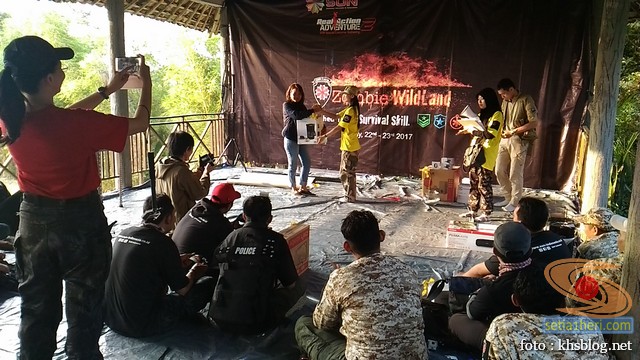Jam 15.00 WIB acara permainan selesai yang dilanjutkan dengan pembagian hadiah. Dalam sesi ini dewi fortuna masih menaungi KHS dengan mendapatkan beberapa kemenangan di beberapa permainan. Kemenangan pertama menjadi best costume untuk Law Enforcement…hehehehe dengan hadiah voucher, dilanjutkan dengan kemenangan tim biru dalam lomba smoke skirmish dengan hadiah Google VR dan terakhir Tim Black Pigment menjadi best team dalam permainan Zombie Survival Mission dimana mampu mengumpulkan poin terbanyak sehingga setiap anggota tim diganjar 1 buah unit gadget samsung…hehehe. Alhamdulillah…rejeki anak sholeh