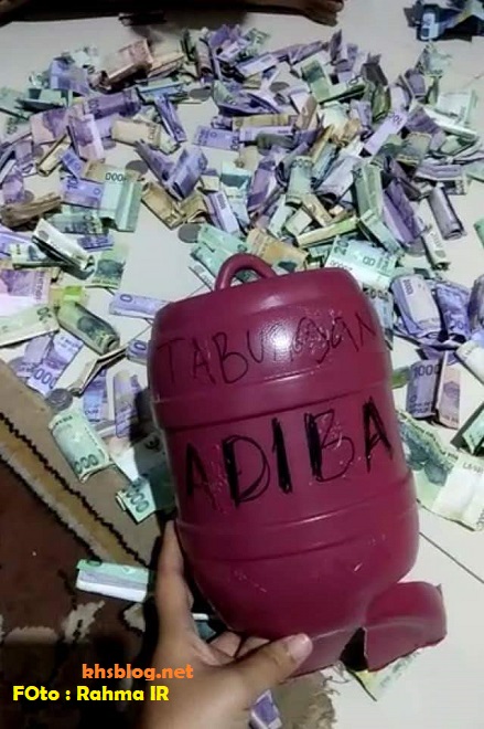 Tidak semua uang dalam pecahan 20.000, karena kadang kami lupa, kadang kami tidak cukup uang, semua manusia ada pasang surutnya, Alhamdulillah jika sehari tidak menabung maka akan dihitung sebagai hutang olehnya, jika saat keuangan cukup,maka dia akan memasukan uang untuk 1 minggu kedepan dan begitu seterusnya sampai hari ini kita memutuskan untuk membukanya kemudian akan kami setor ke Bank atas nama ADIBA anak kami…Semoga lebih istiqomah di tahun 2018..