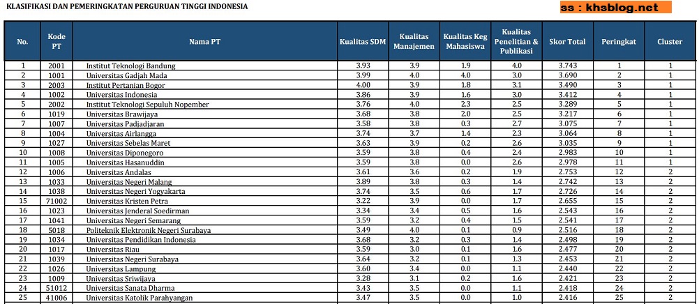 Atau kunjungi langsung web menristek dikti : http://ristekdikti.go.id/sk-klasifikasi-dan-pemeringkatan-perguruan-tinggi-di-indonesia-tahun-2015/