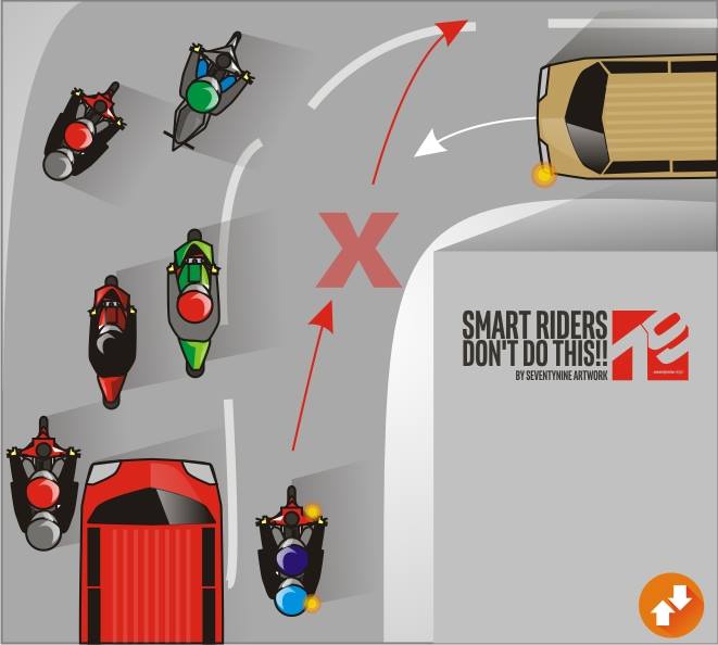 Jangan mengunci laju arah kendaraan berlawanan ketika kondisi padat. Situasi ini sering terjadi di ruas jalan yang sempit 2 arah, dengan kondisi macet, niat hati ingin lebih cepat overtake dari jalur kanan sampai akhirnya ga bisa maju lagi dan sialnya ga cuma satu orang yang begini, mereka berjemaah dan akhirnya… stuck “ngelock” niat mau lebih cepet malah jadi macet kan?