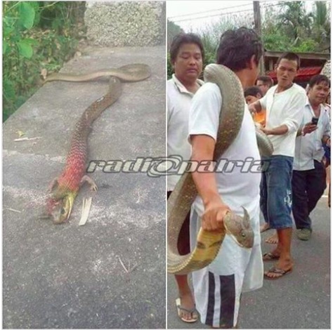 Menurut tulisan itu, ular tersebut ternyata temuan di sekitar Gunung Kinabalu, Malaysia. Namun juga ada netizen yang menyatakan bahwa ular tersebut ditemukan di Thailand. Entahlah….