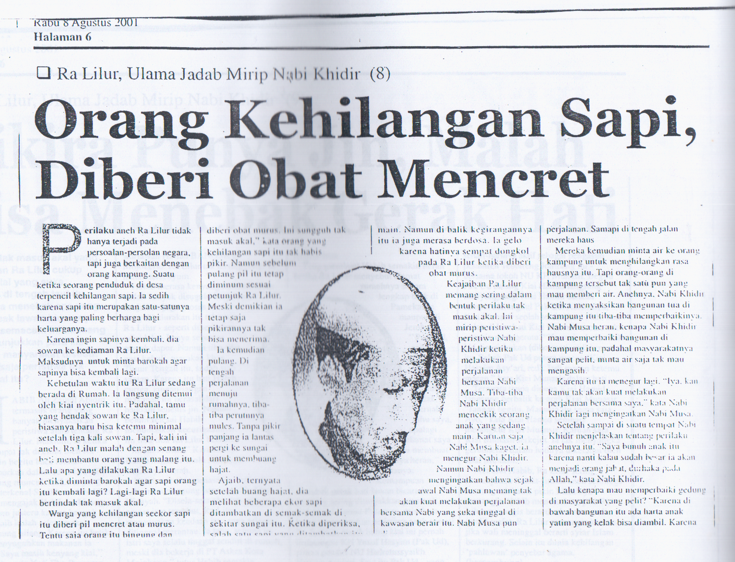 Nah mantemans nampak apa yang dilakukan Ra Lilur diatas juga ada kemiripan dengan perilaku aneh Nabi Khidlir. Sesuatu yang tidak masuk akal namun itu semua terjadi. Wallahu A’lam Bishawab