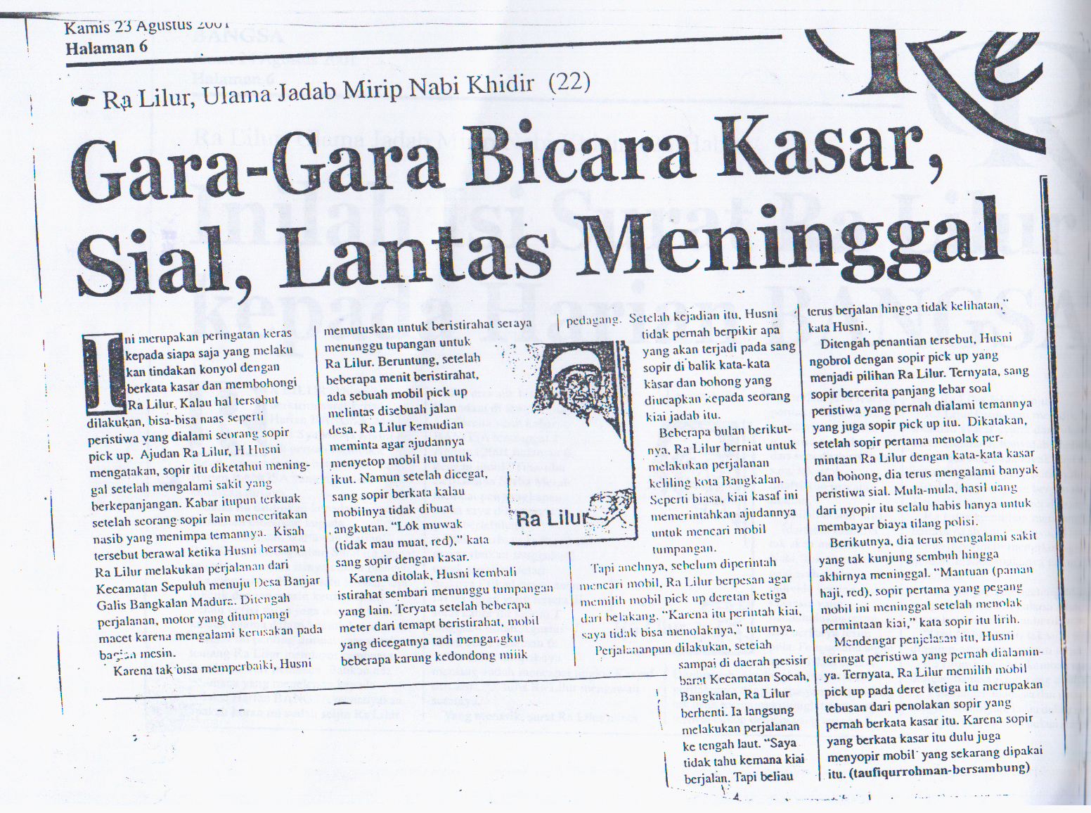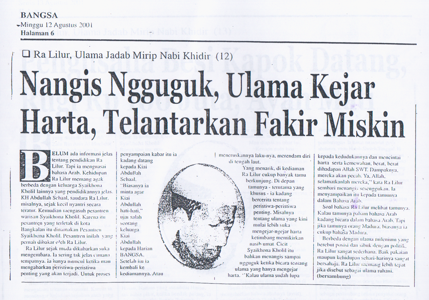 Klo ngomong jgn sembarangan bos. Beliau itu wali allah, beliau itu msh keturunan dari sayhona holil bangkalan.msh keturunan sunan gunung jati,asal loe tau ya pak sby,bakri,dll orang penting d negara ini.kli g tau mendingan loe diem drpd kualat,coba loe main k ndalem beliau biar loe ngebukti’in smuanya,mulutmu harimaumu