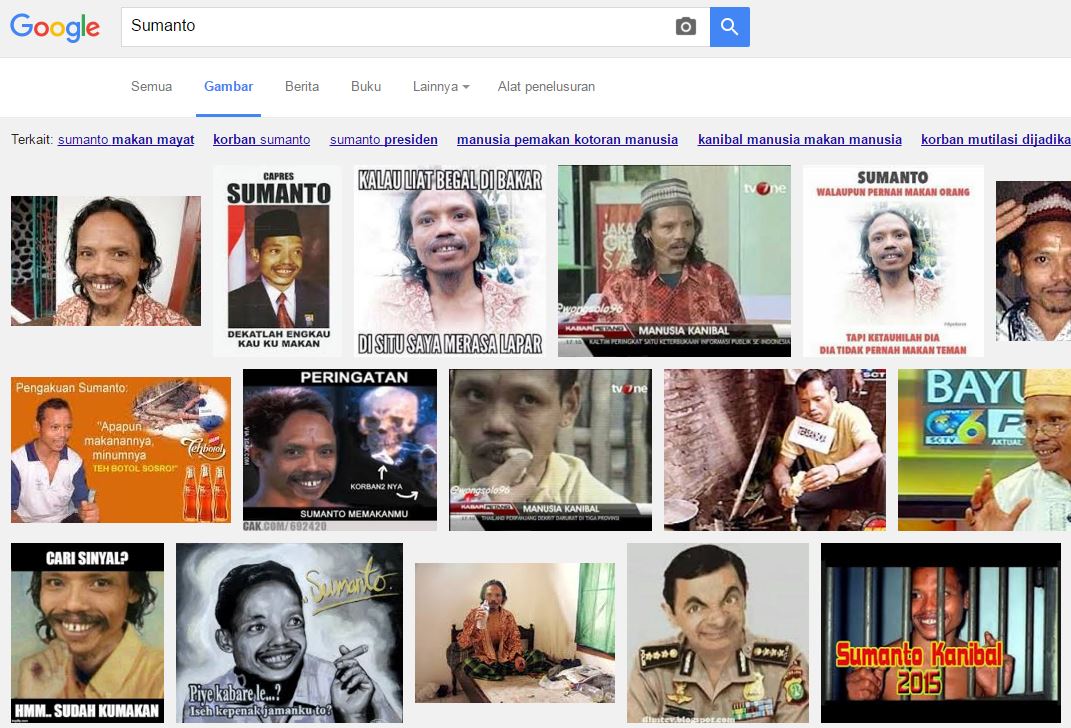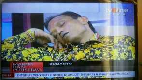 Sumanto, nama ini begitu terkenal tahun 2003 silam. Dia merupakan sosok kanibal asal Purbalingga, Jawa Tengah. Dia membuat kehebohan dengan mencuri mayat seorang nenek yang baru saja dikubur dan memakannya karena dipercaya akan memberinya kekuatan supranatural. Namun menurut beberapa ahli ulah Sumanto ini terdapat gangguan kejiwaan. Akibat aksi kanibal ini dia dihukum pidana selama 5 tahun, namun dibebaskan pada 24 Oktober 2006 bertepatan Hari Idul Fitri setelah beberapa kali mendapatkan remisi. Nah saat acara di televisi talk show tvOne, “Makna dan Peristiwa” kemarin dia terlihat terlelap tidur meskipun ditayangkan secara langsung dan tidak ada yang berani membangunkannya …..hehehe