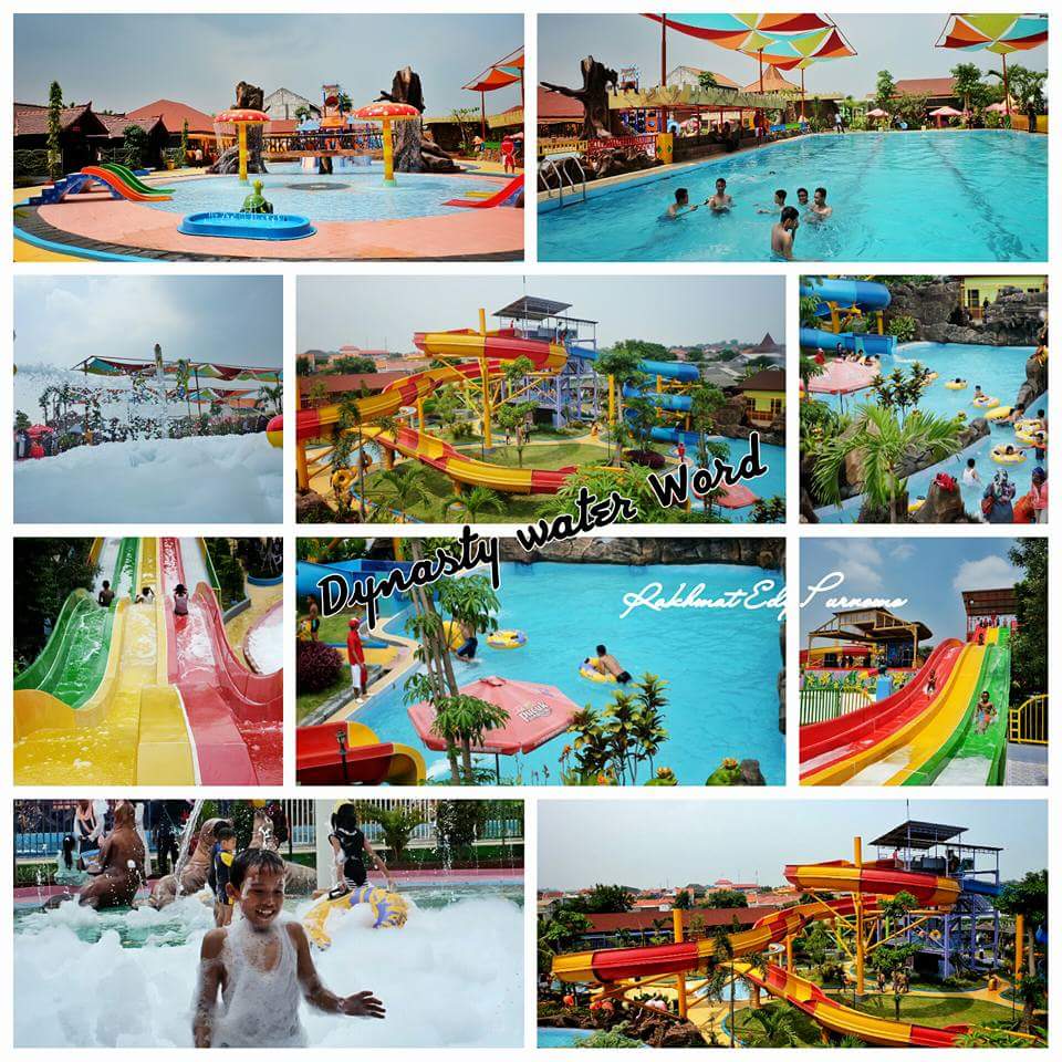 Sebagai informasi Dynasty Water World ini memiliki 9 pilihan wisata air mulai kiddy pool, semi olympic pool, futsal air, dynasty jacuzzi, lazy river,racing slide,flush bowl,supajet dan raft slide.