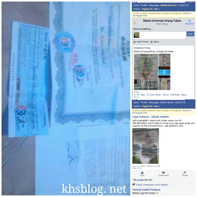 Informasi yang dihimpun sebenernya modus ini pernah terjadi pada tahun 2009-2010 namun ternyata tidak sedikit masyarakat yang belum tahu. Dokumen pernah juga ditemukan di sekitar Tuban sebagaimana seorang netizen Media Informasi Orang Tuban (MIOT) on facebook melaporkan. Sekilas dokumen nya memang meyakinkan terlebih dengan keberadaan selembar cek senilai milyaran rupiah. Sopo gak kemecer?….hehehehe. Jangan sampai kebaikan Anda dimanfaatkan oleh pelaku penipuan kawans….abaikan saja….