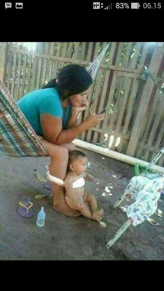 Anakpun dibiarkan main sendiri dengan dunianya tanpa kehadiran emosi seorang ibu. Ini mungkin contoh potret yang tidak tepat dalam mengasuh anak. Apa tidak kwatir karma suatu saat sang anak yang berbuat serupa dimasa depannya? Semoga hanya kekhilafan semata seorang bunda dengan buah hatinya.