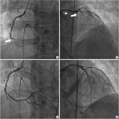 Kasus ini bukan kasus fiktif, hanya saja settingnya disesuaikan dengan realitas di Indonesia. Kejadian yang sama menimpa pasien berusia 39 tahun yang hanya memiliki faktor risiko merokok di KOREA SELATAN. Tapi disana, karena hampir setiap RS di kota besar memiliki fasilitas Cath Lab yang sanggup melakukan Primary PCI maka tindakan live-saving ini dapat dikerjakan dalam waktu yang relatif cepat. Dibawah bisa dilihat adanya sumbatan pada kedua arteri koroner yang kemudian sukses dibuka melalui tindakan Primary PCI. Pasiennya tertolong tanpa komplikasi yang berarti. Kasus aslinya bisa dibaca di http://goo.gl/MeFzPD