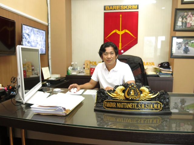 Bagi warga Kota Surabaya tentu tidak asing dengan sosok nyentrik dan unik Kasatreskrim Polrestabes Surabaya, AKBP Takdir Mattanete ini. Pria pemburu krimininal ini dandanannya khas yakni berambut gondrong dan berbau wangi. Banyak kriminalis dan resedivis takluk dibawah tangannya di Kota Surabaya. Namun apadaya karena berdasarkan Telegram Rahasia (TR) pria yang akrab dipanggil ‘Nette Boy’ oleh netizen ini akan promosi menjadi Kapolresta Tanjung Perak Surabaya. Maka mau tidak mau mesti rela memotong rambut khas gondrongnya ini…….Nah ini penampakan rambut baru bapak penggemar moge ini….hehehe