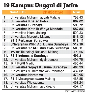 Daftar 19 PTS terbaik alias unggul di Jawa Timur tahun 2016