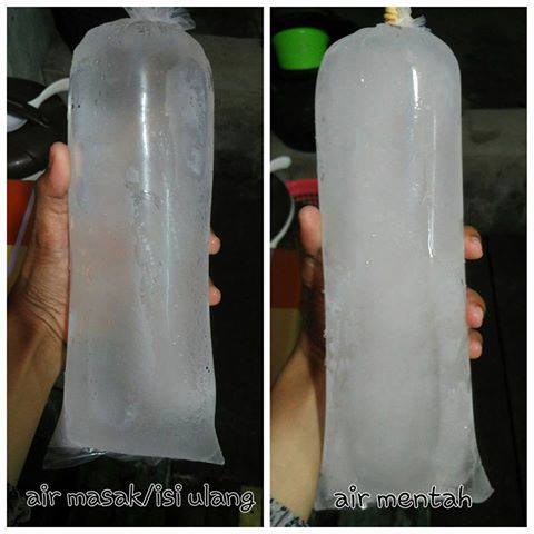 Seorang netizen di Gresik Sumpek memposting hal ini. Adnan Safaraz Al-Afasy, “Es batu yang terbuat dari air mentah terlihat berwarna putih layaknya susu dan terdapat gelembung-gelembung yang terperangkap di dalam es. Hal tersebut dikarenakan masih banyak gas atau oksigen yang berada di dalamnya” ujar akun ini. Selanjutnya disampaikan bahwa air mentah mengandung banyak bakteri. “Banyu mentah berbahaya’e karna bakteri2 yang terkandung ddlmnya belum mati , harus di masak terlebih dahulu”lanjutnya.