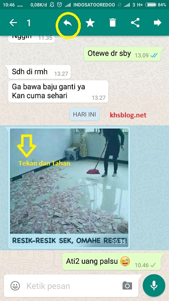 - Tekan dan tahan pesan yang akan dibalas atau di quote