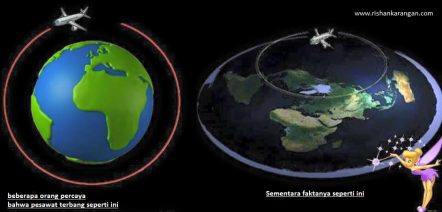 - Bentuk bumi bulat serta foto-foto bumi dari luar angkasa merupakan rekayasa konspirasi yang diatur oleh Badan Antariksa NASA dan badan pemerintah lainnya