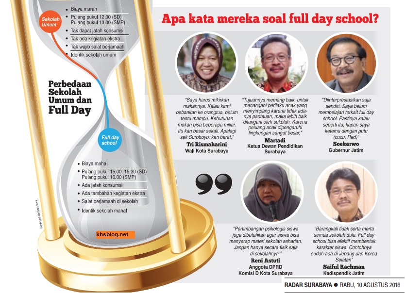 Kira-kira semacam itu mantemans pro dan kontra terkait gagasan full day school dari mendikbud Muhadjir Effendy ini. Kira-kira menurut panjenengan seperti apa terutama yang sudah mempunya anak usia sekolah?