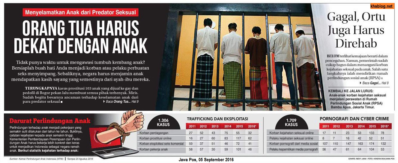 Anak menjadi sasaran predator seksual. Terungkapnya kasus prostitusi 103 anak yang dijual ke gay dan pedofil di Bogor pekan lalu membuat semua pihak terhenyak. Sebelumnya juga banyak kasus kekerasan maupun kejahatan seksual yang menimpa anak baik laki-laki maupun perempuan. Contohnya kasus perkosaan dan pembunuhan terhadap anak SMP bernama Yuyun beberapa waktu lalu. Sebelumnya juga ada kasus anak JIS yang membuat semua mata terbelalak. Tahun 2015 silam sebenarnya pemerintah telah meluncurkan program Gerakan Nasional Anti Kejahatan Seksual terhadap Anak (GN-AKSA). Berikut data Komisi Perlindungan Anak Indonesia (KPAI) mengenai Daftar statistik kejahatan terhadap anak tahun 2011 – 2016.