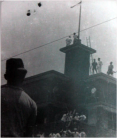 Semula akan dilakukan perundingan namun menemui jalan buntu. Beberapa pemuda yang teridentifikasi bernama Sidik, Hariyono dan Sudirman sempat berkelahi dengan Ploegman hingga menyebabkan kematian orang belanda ini. Situasi tak terkendali akhirnya terjadilah perkelahian antara massa dan beberapa orang belanda di dalam hotel Orange saat itu. Beberapa pemuda lain seperti Soemarsono, Roeslan Widjajasastra berinisiatif untuk merobek bendera belanda khususnya warna biru sehingga jadilah bendera Indonesia.