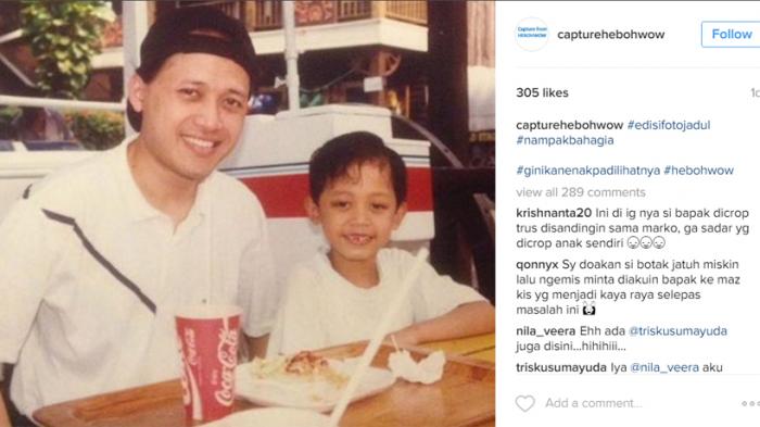 Foto diatas merupakan sebuah cropping dari foto lawas atau jadul. Via akun @capturehebohwow diketahui foto jadul tersebut ternyata merupakan foto masa lalu antara Mario Teguh dengan Ario Kiswinar Teguh. Beberapa netizen menanggapi secara emosional foto asli yang dicrop tersebut. ” Haha ini kan foto pas dengan (…..) ko di crop sampingnya .. Kenapa musti di buang … Astaghfirullah,” komentar asma_abimanyu.