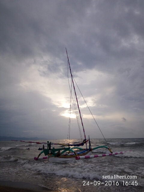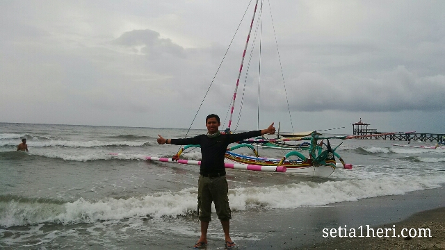 Tepat dibelakang Hotel Sido Muncul 1, KHS langsung bermain dengan ombak. Waktu menunjukkan 16.38 WIB namun kelihatan sudah agak gelap karena langit tertutup mendung. Meskipun begitu sisa-sisa cahaya mentari sore masih terlihat menerobos gumpalan mendung.