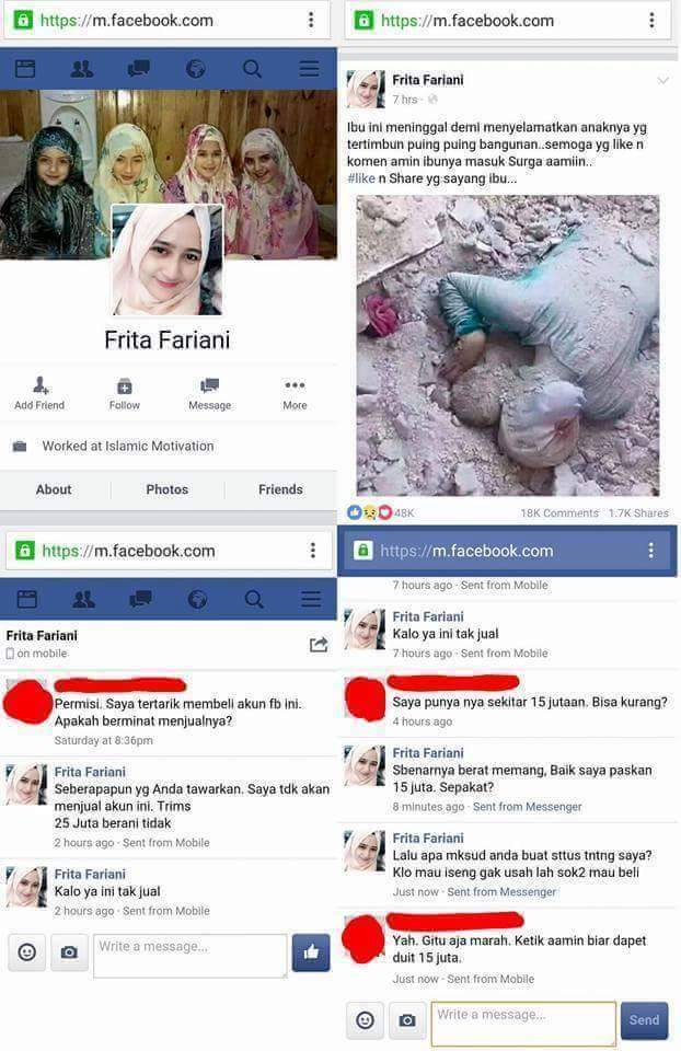 Beberapa waktu lalu admin sempat membahas modus status yang meminta like dan tulis Amin. Ini adalah bukti penawaran akun yang berhasil dtangkap Didik Nugroho.