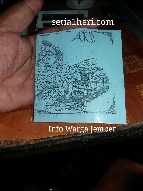 ” Lur mohon pencerahanx.. Iki gambar berlafat ALLAH tp gambarx g jelas mirip petrok.. Tdi ada orang mintal amal truz ngasikkan ini.. Aq kudu piye .. Apa ini jimat apa gmna ya.. Mksih ” ujar Raden Rifqie Al-Arifin di grup facebook Info Warga Jember pada hari Kamis, 27 Oktober 2016.