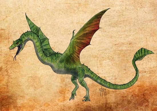 - Wyvern (Eropa) .Wyvern adalah makhluk legenda yang populer di Eropa, terutama di Inggris. Menurut karya sastra, Wyvern memiliki kepala Naga, sayap, badan reptil, sepasang kaki dan ekor yang panjang. Makhluk ini juga dianggap saudara jauh dari Naga karena kemiripannya. Wyvern banyak tampil di film-film terkenal seperti Game of Thrones, dan game seperti Skyrim.