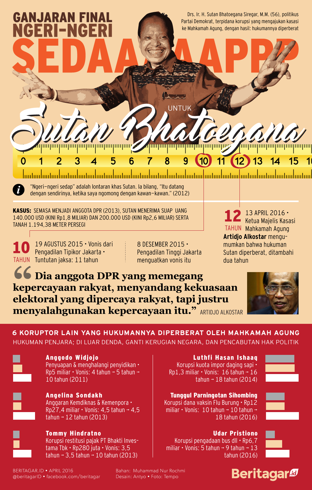 Sutan Bhatoegana, politisi demokrat ini pernah menjadi tokoh meme di Indonesia dengan caption “ngeri-ngeri sedap”. Mantan Ketua Komisi VII DPR RI periode 2009-2014 itu kondisinya sungguh memprihatinkan. Sebuah foto dari Max Sopacoa, rekan sesama Demokrat sedang menjenguk Sutan Bhatoegana di Bogor Medical Center, Jawa Barat hari minggu, 13 November 2016 menjadi viral lantaran kondisi Sutan yang kurus kerontang.
