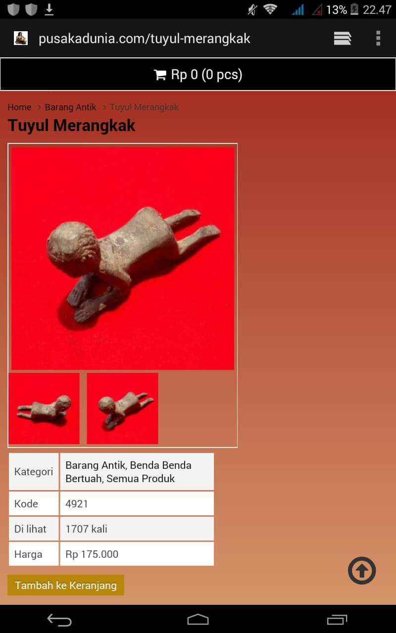 Patung tuyul merangkak ini Berasal Dari Bahan : Wesi Kuning / Besi Kuning / Besi Kursani. (Kusam Karena Terpendam). Ukuran Tinggi Tuyul ini : 6 CM. Biasanya juga diperjualbelikan bagi penyuka benda-benda atik dan magis.