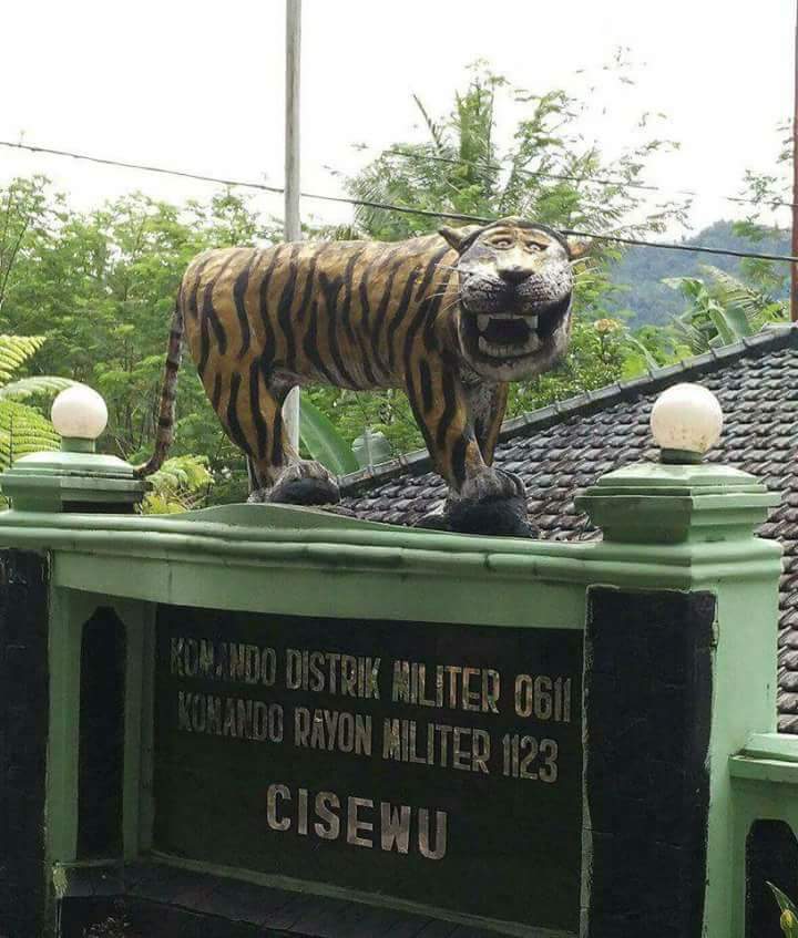 Sejatinya macan di Koramil Cisewu tersebut merupakan lambang simbol dari prajurit Kodam Siliwangi namun terlihat kurang garang sehingga menimbulkan rasa lucu. Namun saat ini patung tersebut sudah dirobohkan dan rencananya akan dibangun lagi lebih baik dan proporsional.