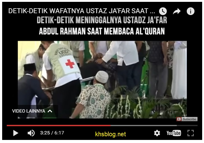 Dari video yang beredar, ustadz jakfar sedang melantunkan Surat Al-Mulk namun pada ayat keempat terdengar suaranya merendah dan hilang sambil memegang dada. “Tubuhnya merunduk ke depan terus jatuh blek kebelakang mas,” ujar Arif, salah seorang dilokasi acara sekaligus peringatan Isra’ Mikraj tersebut. Selain seorang Qari, Ustadz Jakfar Abdurrahman juga seorang hafiz atau penghafal Al Quran. Informasinya beliau tinggal di sekitar Wonocolo, Surabaya.