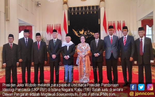 Daftar pejabat Unit Kerja Presiden Pembinaan Ideologi Pancasila (UKP-PIP) Tahun 2017. Hari ini Rabu, 7 Juni 2017 Presiden Joko Widodo (Jokowi) melantik pejabat Unit Kerja Presiden Pembinaan Ideologi Pancasila (UKP-PIP) Tahun 2017. Anggota pejabat Unit Kerja Presiden Pembinaan Ideologi Pancasila (UKP-PIP) Tahun 2017 berjumlah 10 orang. Pejabat diisi dari tokoh-tokoh agama yang ada di Indonesia.