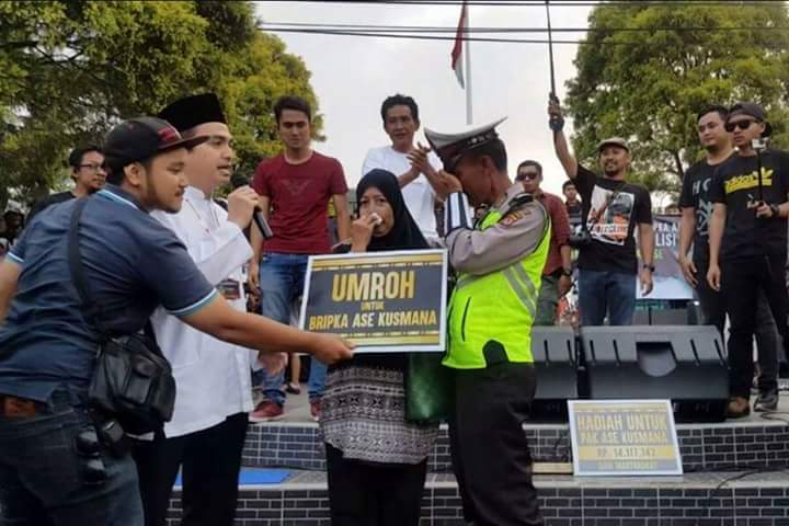 Bripka Ase Kusmana, seorang anggota polantas di Polsek Cipanas, Cianjur, Jawa Barat dihadiahi umroh oleh masyarakat setempat. Demikian sebuah akun facebook Cut Meutia Adrina mengabarkan pada tanggal 24 Juni 2017. Selengkapnya berikut kisahnya.
