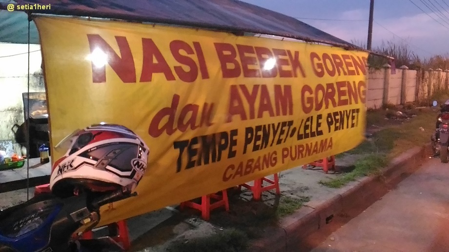 Bebek goreng atau ayam Goreng Cabang Purnama, dimanakah pusatnya?….hehehe #penasaran. Bagi mantemans yang domisili di sekitar Surabaya, Gresik dan Sidoarjo tentu tidak asing dengan warung PKL penyetan bebek/ayam goreng Cabang Purnama. Biasanya para penjual penyetan ini akan membuka warungnya pada sore hari jelang malam disepanjang jalan-jalan utama. Ciri khasnya kain kuning dengan tulisan bebek/ayam goreng “cabang purnama”. Dan selama ini KHS selalu penasaran dimanakah pusat dari Purnama ini…xixixixixi.