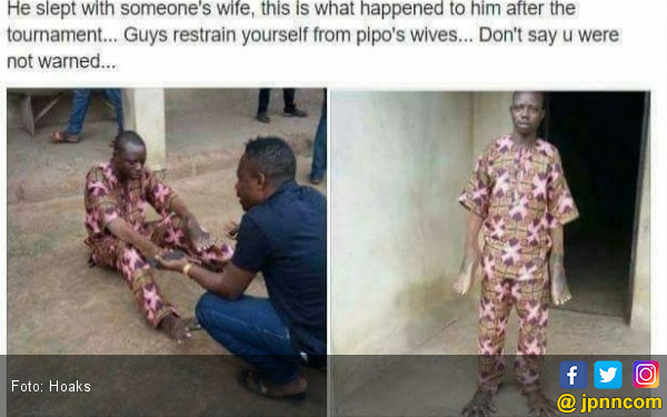Mengutip jpnn.com (30/09/17). Foto tersebut adalah foto seorang aktor asal Nigeria dengan nama asli Tunde Usman sedangkan nama panggungnya Okele. ”See What Happened To This Man After He Slept With Someones Wife,” tulis sebuah akun Facebook mengomentari foto aneh tersebut.