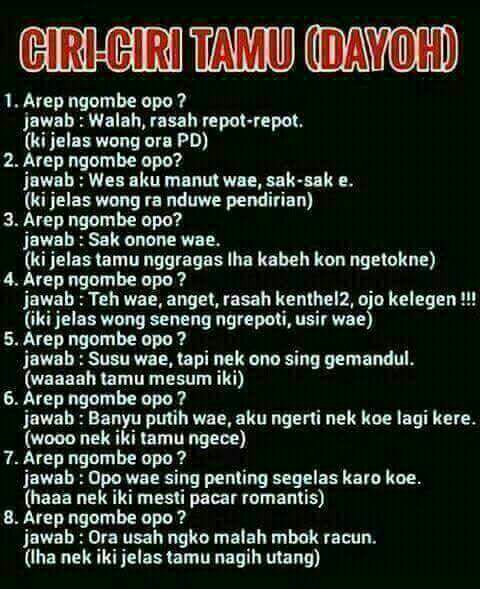 6. Jawab : banyu putih ae, aku ngerti nek koe lagi kere ( wooo nek iki tamu ngece)
