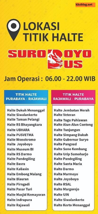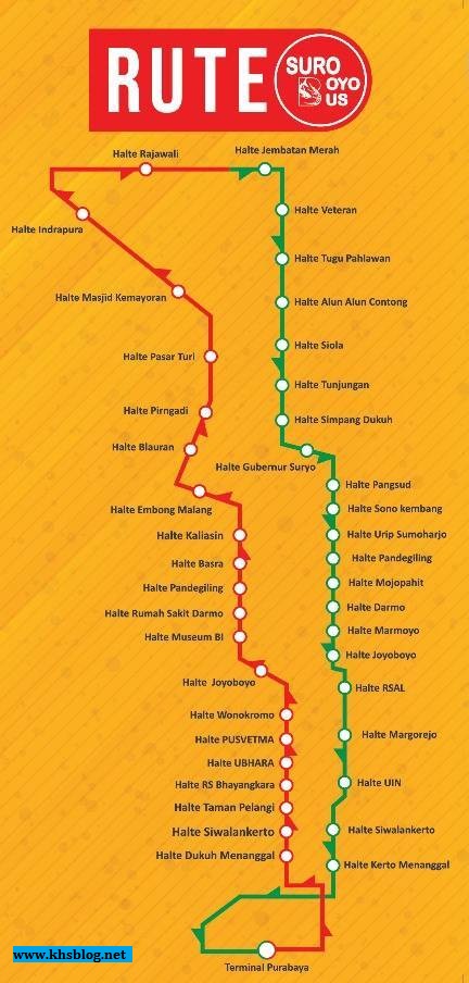Daftar Rute dan halte Suroboyo Bus tahun 2018. Secara umum Rute Suroboyo Bus memiliki alur dari Terminal Purabaya (Bungurasih) menuju Terminal Jembatan Merah Plaza (JMP) dan sebaliknya. Beroperasi mulai dari jam 06.00 – 22.00 WIB setiap hari dengan 8 armada bus. Seperti yang diketahui, untuk naik cukup bayar dengan sampah plastik brosis. Monggo disimak Daftar Rute dan halte Suroboyo Bus tahun 2018.