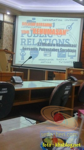 KHS lupa mencatat semua uraian narasumber yang begitu berbobot. Yang jelas peran humas tidak bisa disepelekan terlebih dengan masifnya perkembangan teknologi informasi saat ini. ” terima kasih atas ilmu, sharing baik saran maupun masukan untuk kepolisian…semoga kedepan lebih baik dalam melayani masyarakat” pungkas pak Kapolres Surabaya.