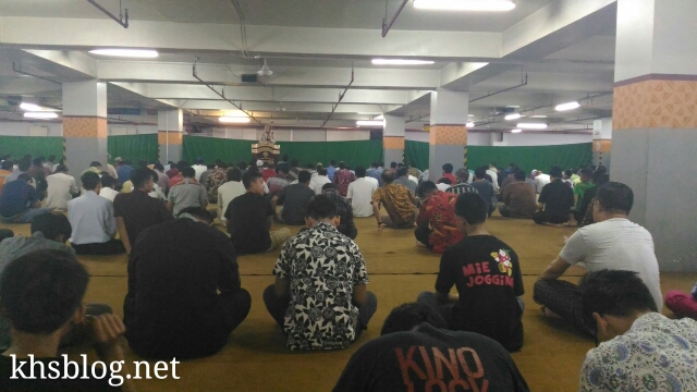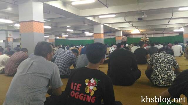 Sekitar jam 12.00 WIB KHS naik lift ke lantai 5 A yang ada di Grand City ini. Disana sudah mulai berdatangan jamaah sholat jum’at. Jangan kaget, lokasi sholat jum’at ada di lokasi parkir mobil yang disulap menjadi masjid dengan karpet dan mimbar khotib.