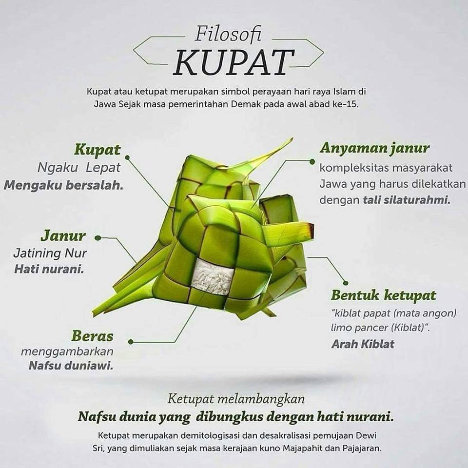 KHS mendapatkan Sejarah dan filosofi kupat atau ketupat dari beberapa postingan yang tersebar secara viral di media sosial maupun WAG. Salah satunya yang diposting oleh warganet Koi TA Iceland di grup facebook INFO WONG SOLO (IWS) tanggal 23 Juni 2018. Monggo disimak gans…