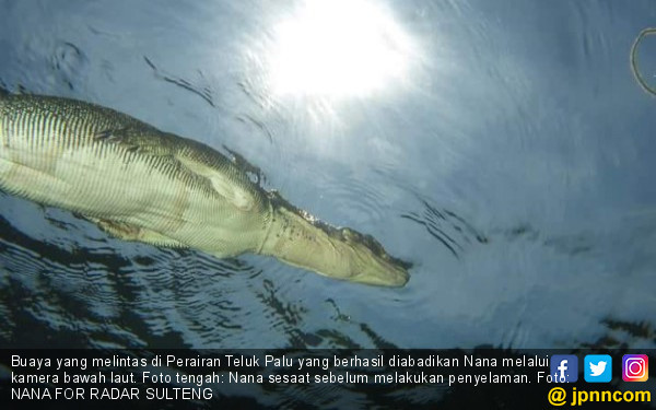 Ceritanya Nana yang berprofesi sebagai bidan ini bersama komunitas diving hendak menyelam dan mempotret bioto laut di Teluk Palu pada sabtu pagi (23/6). Naah saat menyelam ini tiba-tiba dikagetkan dengan keberadaan buaya yang berenang tepat diatasnya. Dengan penuh ketakutan dia memberanikan diri untuk memotret buaya yang sedang melintas tersebut. Dia dan kawan-kawannya tidak berani bergerak untuk menghindari perhatian si buaya.