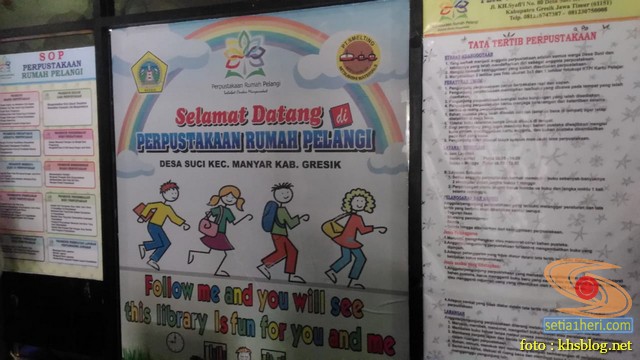 Liburan sekolah, saatnya berkunjung ke Pepustakaan Desa “Rumah Pelangi”, Suci, Gresik. Perpustakaan ini berada di komplek kantor Pemerintah Desa Suci, Manyar, Gresik, Jawa Timur. Perpustakaan ini meskipun sederhana namun tidak sesederhana ragam penghargaan bergengsi yang telah diraihnya. Nama perpustakaannya akrab disebut “Rumah Pelangi”. Ditengah serbuan gadget maka keberadaan perpustakaan bisa menjadi penyeimbang antara kegiatan kinetik dan visual kids jaman now. Inilah pengalaman kami berkunjung ke Perpustakaan Suci yang hanya berjarak 2 km dari rumah kami.