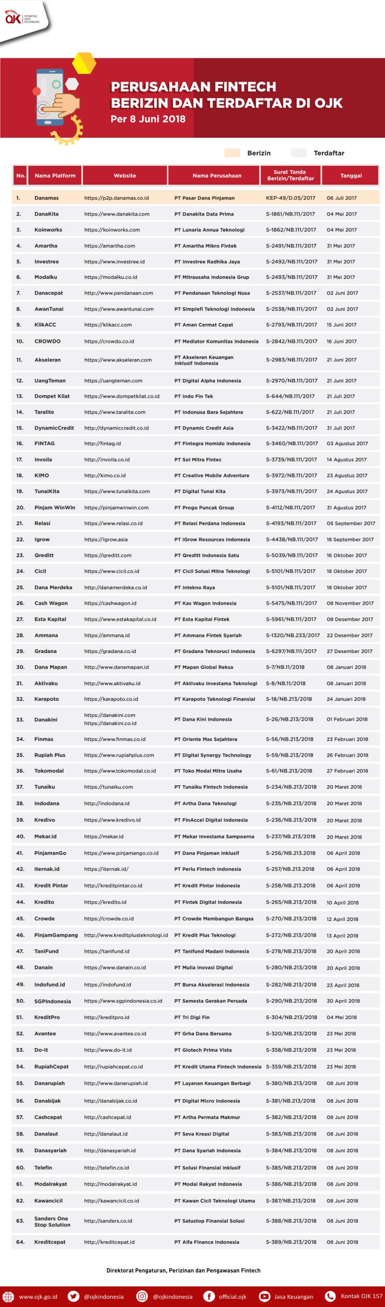 Inilah daftar Penyelenggara Fintech Terdaftar di OJK per Juni 2018