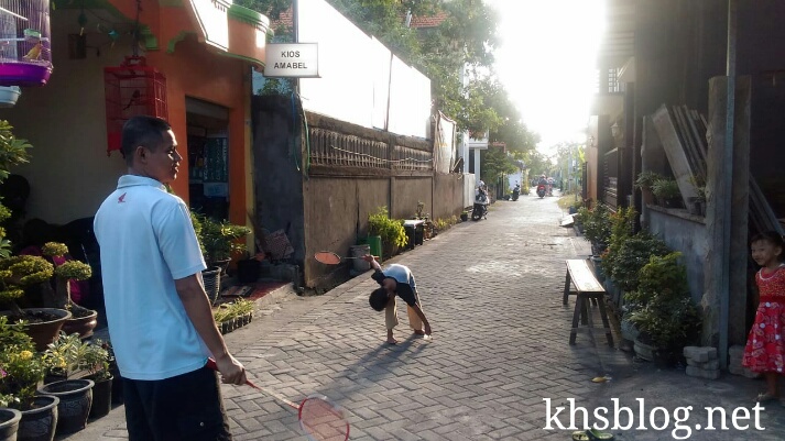 Asyiknya sore ini bersama ayah. Tak biasanya anak dan ayah ini mengisi sore harinya dengan bermain badminton. Usai dari sholat ashar berjama’ah di masjid dekat rumah. Ayah dan anak ini memilih kegiatan badminton di area halaman rumah. Tentunya ini momen tak setiap hari bisa dilakukan mereka berdua. Serunya badminton, hingga bulir-bulir keringat membasahi kaos yang dikenakan.