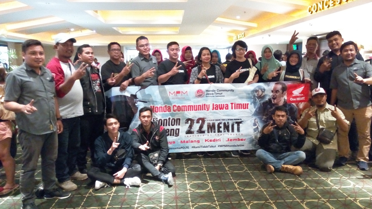 Nobar film 22 Menit bersama Honda Community Jawa Timur. Hari Selasa, 31 Juli 2018 KHS berkesempatan melihat film baru dengan judul 22 Menit. Nobar ini digeber di XXI TP 3 Surabaya brosis sekitar jam 19.30 WIB. KHS yang sepulang kerja langsung mlipir ke TP yang hanya berjarak 500 meter saja. Disana sudah berkumpul mantemans Honda Community serta blogger dan vlogger. KHS bisa nobar atas undangan MPM Distributor gans….