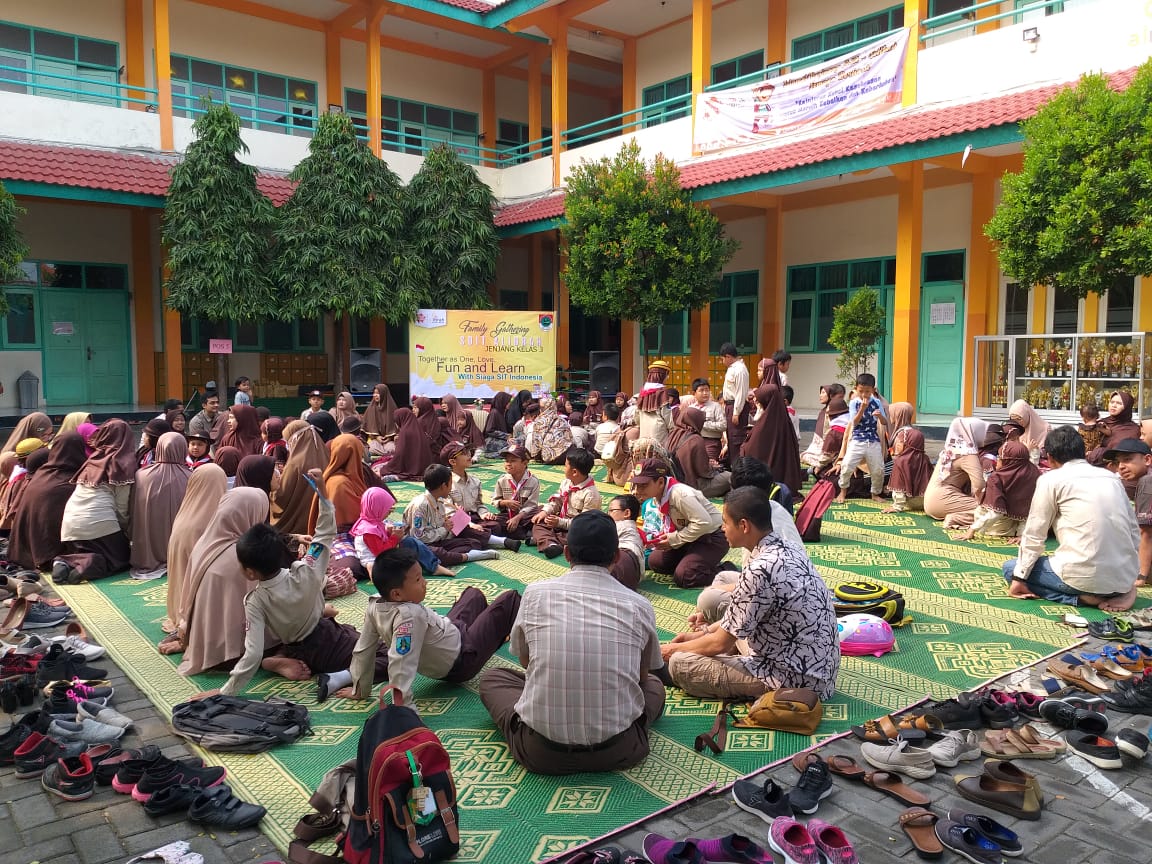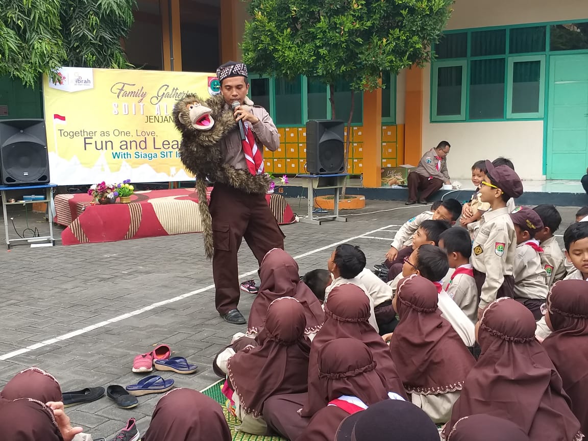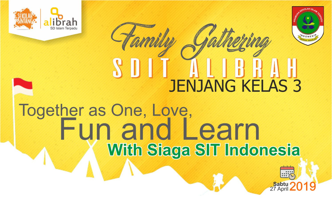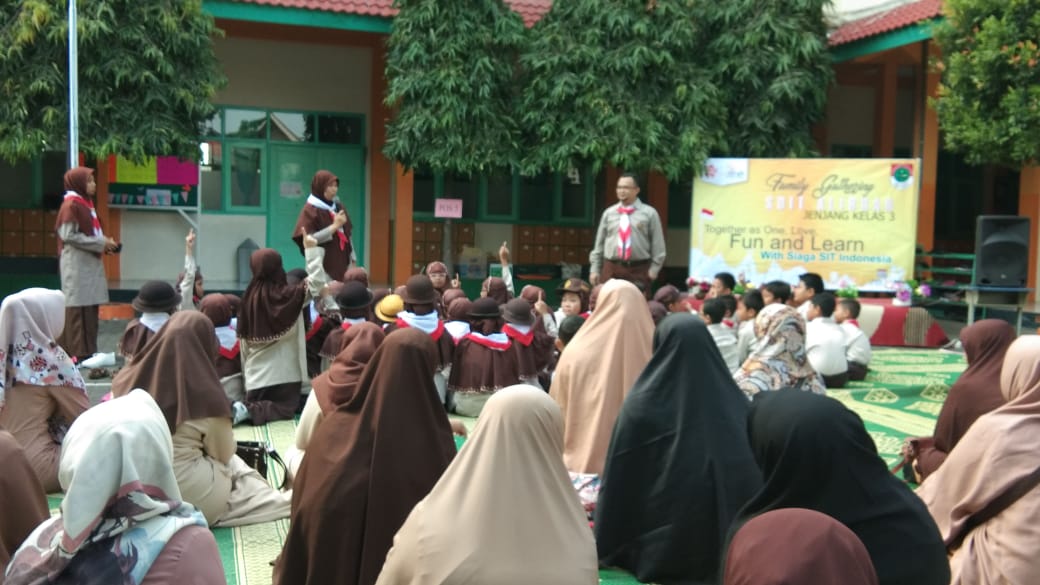 Semarak Family Gathering Bersama Sekolah Bintang. Hari jum’at saat pulang sekolah aku mendapat pengumuman kalau besok hari Sabtu tanggal 27 April 2019 ada acara family gathering yang dengan tema “Together as on, love, fun and learn with siaga SIT Indonesia”. Saat hari Sabtu aku memakai baju pramuka dan berangkat bersama ayahku jam 08.00, saat sampai aku langsung duduk di sebelah temanku yang bernama Insan. Aku mendengarkan panitia berbicara bahwa nanti saat acara dimulai kita akan ke pos-pos yang sudah disiapkan,kami disuruh berhitung mulai dari satu sampai lima lalu kami di suruh berkumpul sesuai angka yang di sebutkan.