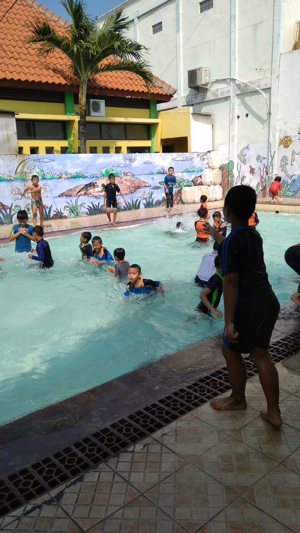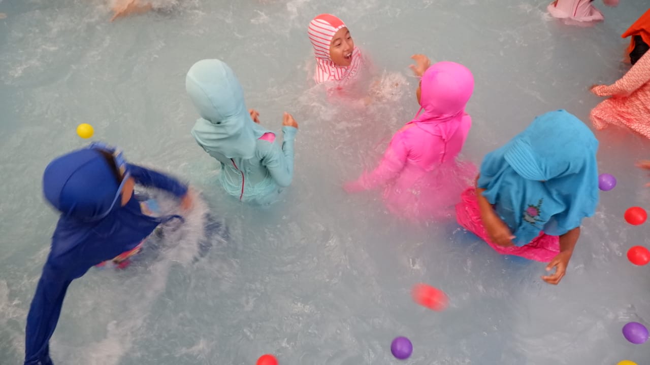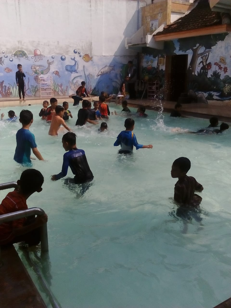 Setelah dzikir pagi aku dan kelompokku mengikuti kegiatan fun game. Saat fun game kelompok kami menuju ke game 2, di game 2 kami bermain estafet bola, kami bermain estafet bola menggunakan sendok. Setelah ke game 2 kami kegame 3, di game 3 kami main estafet air, lalu kami menuju game 4 di game 4 kami bermain matematika dengan cerita, setelah itu kami menuju game 1, di game 1 kami bermain tiup bola ping pong sampai ke gelas ter akhir. Setelah fun game kami ganti baju memakai baju renang,untuk berenang. Kami renang di TK pembina ,kami berenang selama empat puluh lima menit.