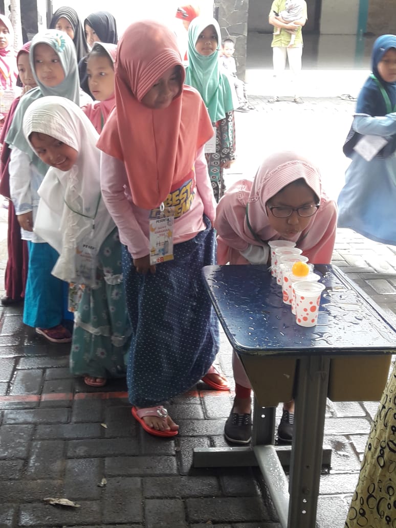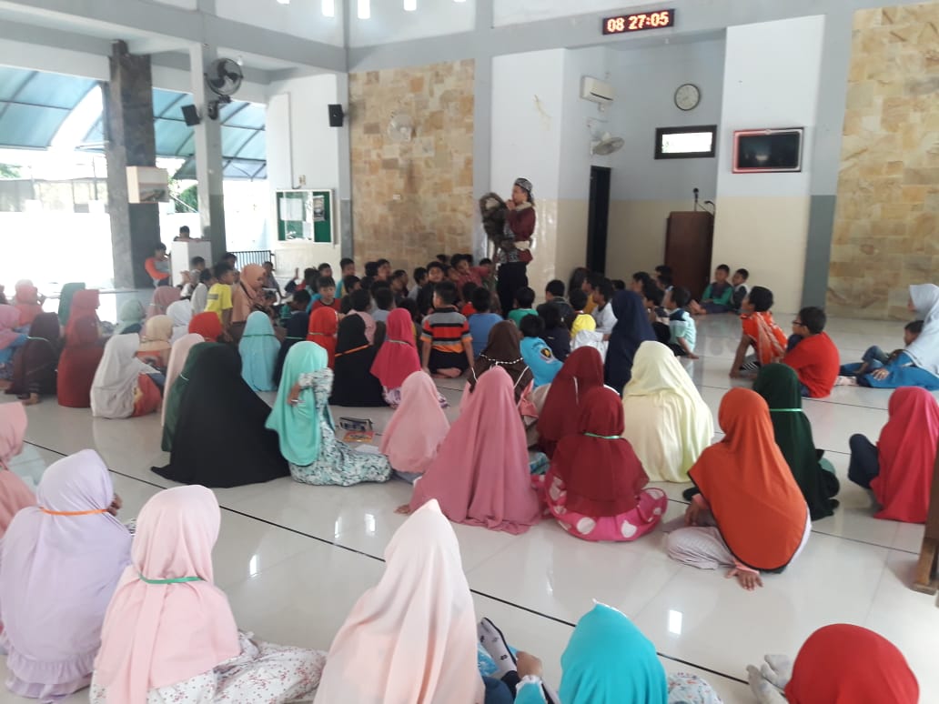 Spesial Hapyy Ramadhan Kids. Hari Rabu aku di daftar ibuku ikut acara hapyy ramadhan kids yang berlangsung 3 hari 2 malam. Acara itu dimulai tanggal 5 Mei 2019. Saat hari Sabtu malam aku menyiapkan barang barang yang harus di bawa yaitu: alat tulis,pensil warna , 4 baju ganti ,peralatan mandi, handuk ,baju untuk berenang, alas tidur, al quran, bantal dan lain – lain. Saat hari Minggu aku berangkat pagi agar tidak terlambat, saat sampai di lokasi ibuku langsung menuju tempat regristrasi untuk chek in, setelah chek in aku di beri kalung tanda peserta yang bertulis namaku dan nama kelompokku yaitu Abu Bakar. Lalu aku menuju masjid untuk mengikuti dzikir pagi bersama peserta lain.